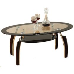 Matching lamp table also available. Frame crafted from brushed stainless steel. Solid oval tempered glass contemporary coffee table with chrome legs. (w)43 x (d)23.3/4 x (h)18. This warm and wooden european walnut table seamlessly compliments any chairs with its charming expression.
