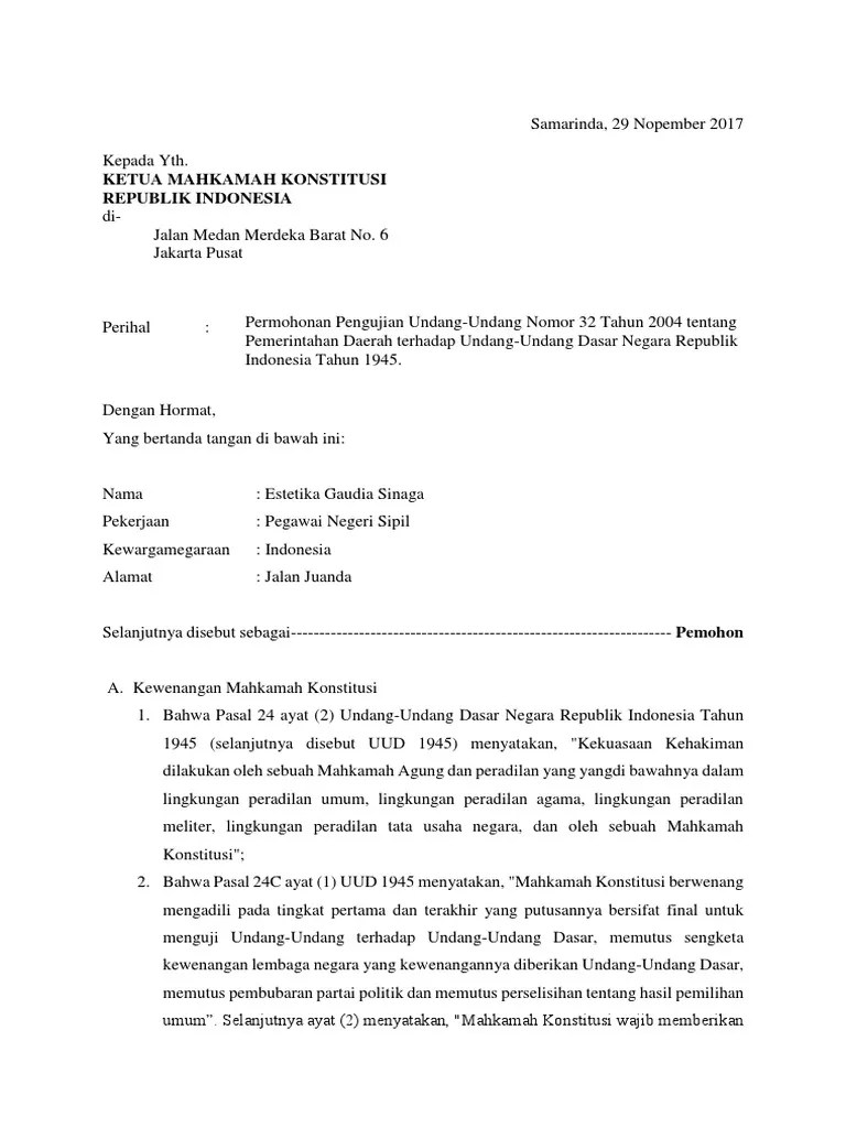 Surat Gugatan Mk / Sidang Dismissal Gugatan Paslon Za Digelar Pekan Ini Ini Dia Informasi Terbaru - 27.10.2021 · mk tolak gugatan uu ite, dua hakim dissenting opinion.. 27.10.2021 · mk tolak gugatan uu ite, dua hakim dissenting opinion. Vor 2 tagen · mk memutuskan bahwa uu cipta kerja akan batal sepenuhnya bila proses perbaikan tak selesai dalam dua tahun. 15.11.2021 · proses mediasi antara menteri koordinator bidang kemaritiman dan investasi luhut binsar pandjaitan dengan direktur eksekutif lokataru haris azhar dan koordinator kontras fatia maulidiyanti hari ini tidak mencapai titik temu. Kontraktor minta maaf proyek ipal bikin warga … Pihak pelapor alias luhut justru berencana melancarkan gugatan secara perdata kepada kedua terlapor atas kasus dugaan pencemaran nama baik.